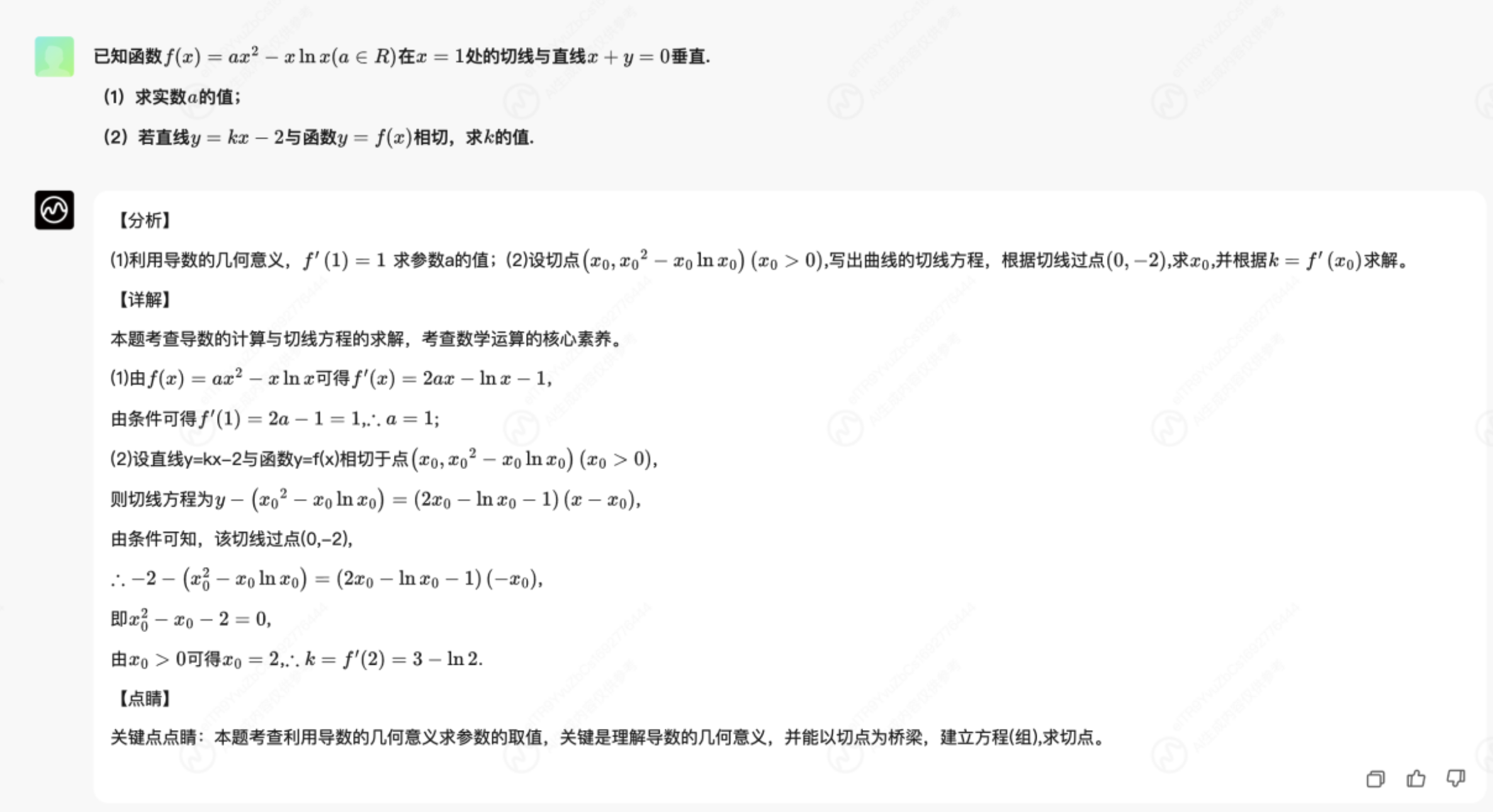 在解题稳定性、讲解友好度方面,MathGPT基于海量名师解题过程的数据进行模型训练,模型的解题步骤专业清晰。