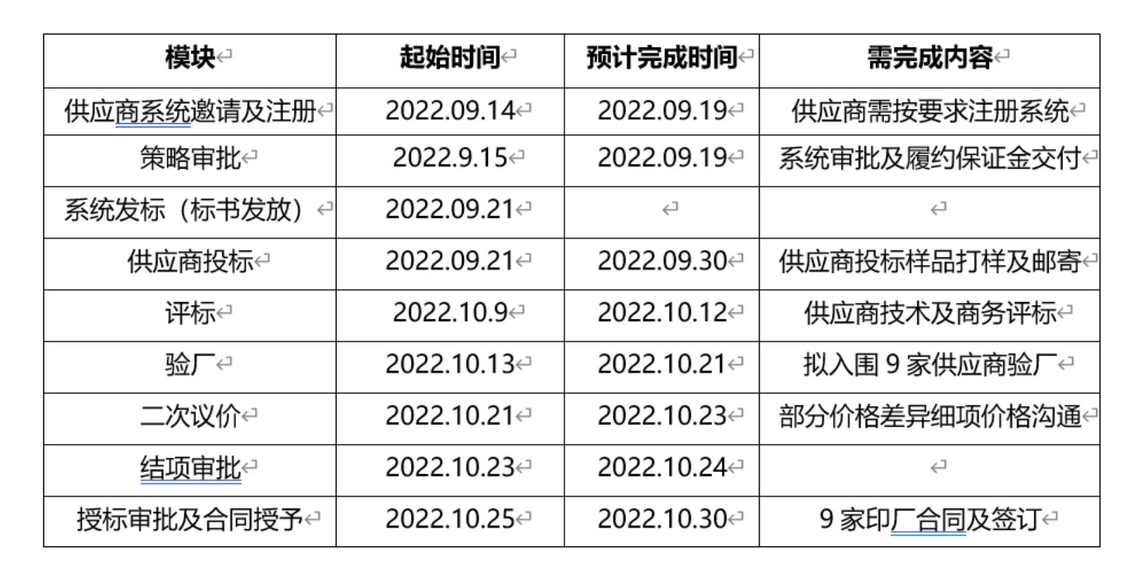 对审核通过的供应商, 我司会通过供应商注册系统向各司登记的招投标联系人邮箱发送供应商注册邀请链接。 请各供应商在收到邀请链接之后,于9月16日前完成系统上供应商注册资料提交并缴纳项目履约保证金(5万)以便参与下一轮竞标,逾期视为放弃。